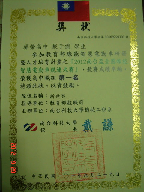 資三1陳昱信同學獲電子類第1名 |