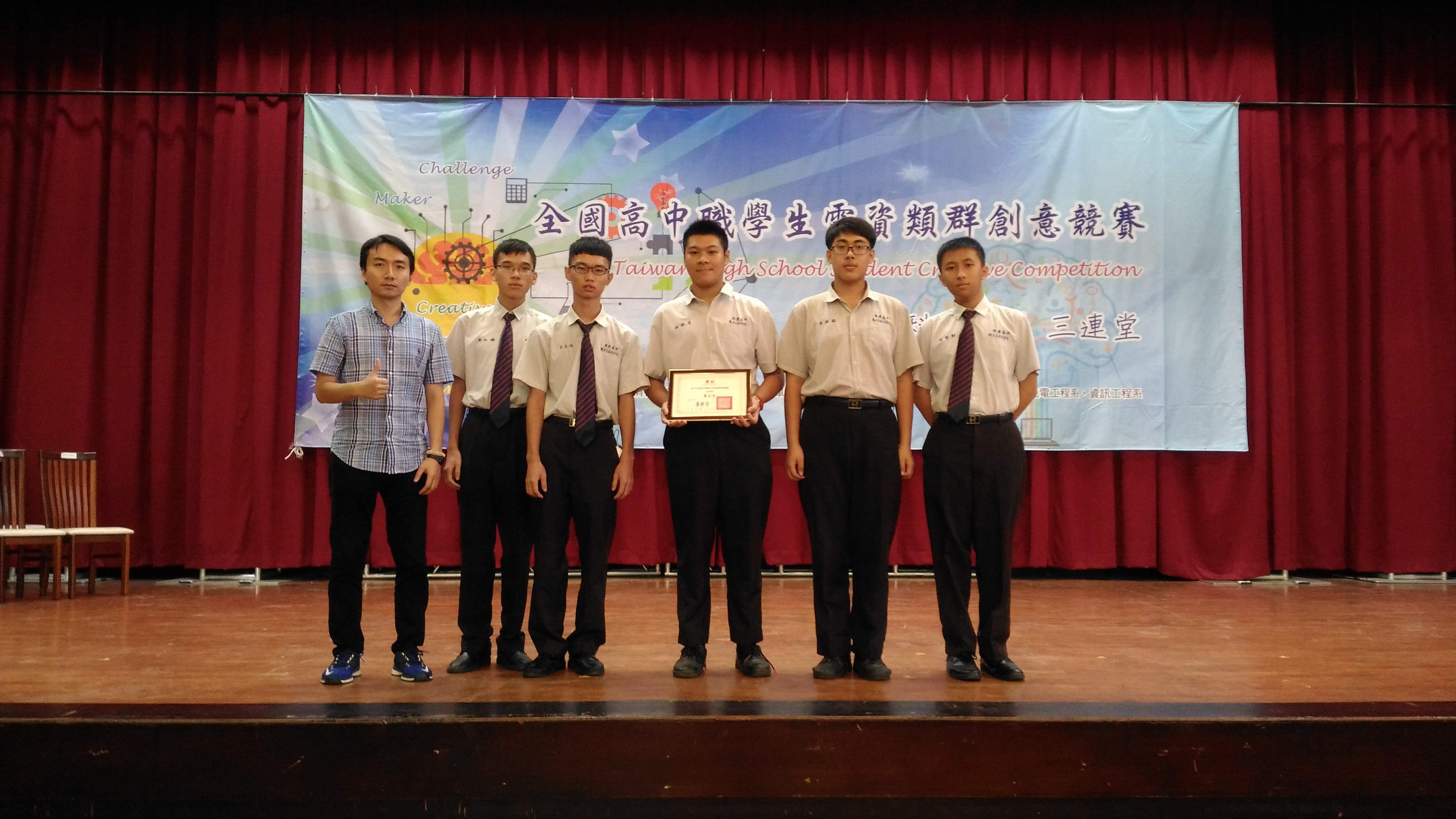 参賽學生資三1徐正龍,邱勻誌,張祐諭,林祐丞,郭星偉